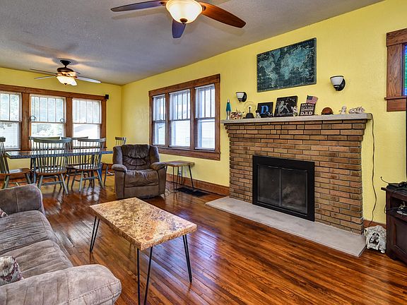 Great home on a corner lot with large living/dining room including gas fireplace, and hard wood floors. There is also a formal dining that could be an office, or 4th bedroom. Master bedroom is on the main floor and has large walk-in closet and soaking tub. Kitchen has center island for extra counter space, and custom concrete counter tops. All appliances stay including washer, dryer and refrigerator. There is also a large walk-in tiled shower. Basement is unfinished and great for extra storage. Yard is fenced and there is a one card detached garage. Central heat/air on main floor. Covered front porch is perfect fro a porch swing and relaxing.