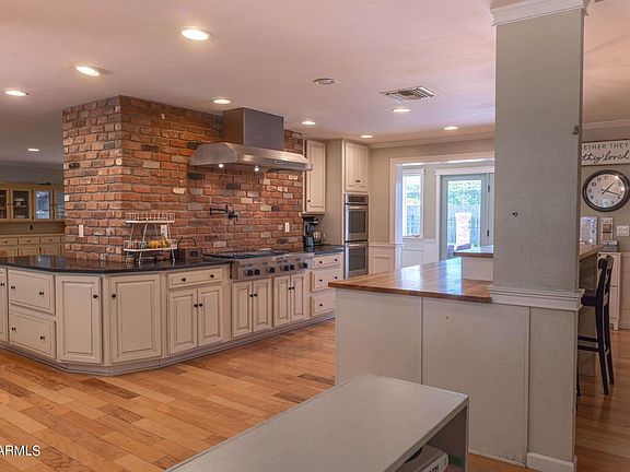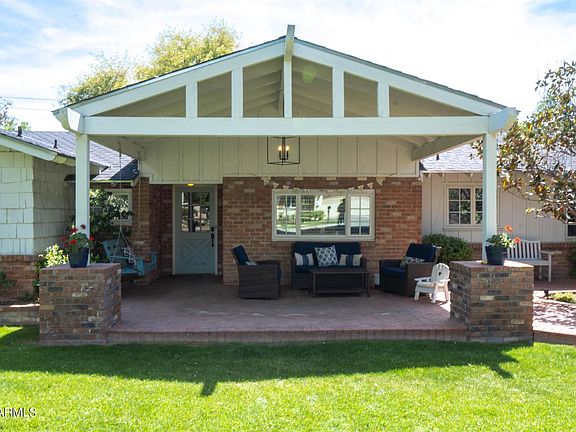 Absolutely charming ranch home on one of the most desired, quiet cul-de-sac streets in North Central Phoenix. This home boasts 4 bedrooms and 3.5 remodeled baths. Home has been remodeled with quality, classic finishes including natural hickory floors, marble, and custom cabinetry. Original red brick in the large chef's kitchen was even exposed, offsetting the pot filler over the gourmet gas range. Kitchen also has stainless double ovens, and both microwave and warming drawer in the enormous island so you can host your favorite people.This house was made for front porch living, with shade trees and a cozy covered patio. Back yard is a dream, with a second covered patio, pool, AND spa. There's also a gas fire pit, BBQ, a batting cage and a play set.