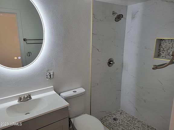 rewiring the electrical in the back, installation of two brand new sets of solid wood kitchen cabinets and new quartz countertops, replumbing showers, installing new tiles in bathroom, recessed lighting installed throughout the house, new baseboards, new flooring, new sliding glass door, new toilets, new bathroom vanities, and new paint!
