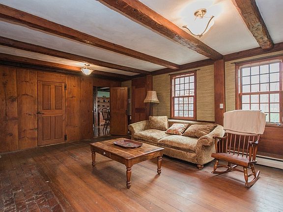 This is the Beal House, circa 1780 - a stunning classic center chimney cape style home. Many original details and character throughout including beautiful wide pine floors, 3 fireplaces, wainscotting, original paneled walls and exposed beams. The kitchen has been updated to include cherry cabinets, stainless appliances, exposed beams and granite countertops. Two spacious bedrooms can be found upstairs. The first floor main bedroom includes a fireplace and original mantle. The large living room includes a fireplace, original woodwork and a back entry way out to a fenced in backyard and patio. Laundry room is just off the kitchen area and includes attached unfinished barn space with storage above. The lovely main floor bathroom has had recent updates with newer tile. An office can be found just off the living room. A long mudroom hallway connects to attached workshop space that has so much potential to be finished! The fenced in backyard includes a storage shed. Convenient location.