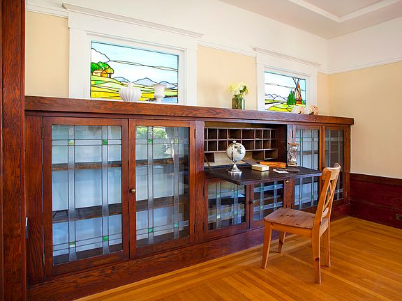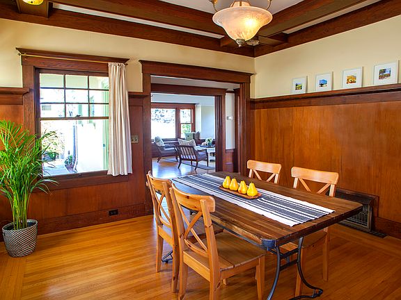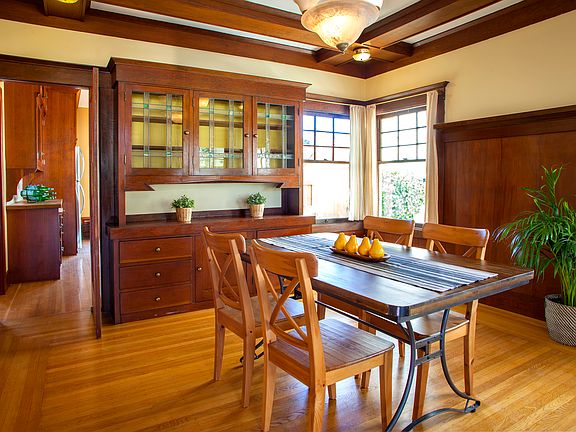 Close to everything (with a "Walk Score" of 93!) this beautiful 1916 Craftsman will charm you, and the convenient friendly neighborhood will make you happy to call 437 Elwood home.The house features gorgeous original woodwork, including built-in dining cabinets, window seats, and a fold-out secretary desk, original trim and box beam ceilings. The huge front windows look out to a view of the Oakland hills. Enjoy hardwood floors throughout, a large and sunny living room, formal dining room, and a lovely renovated craftsman kitchen. Both bedrooms are roomy and comfortable. The bathroom has new tile floors, and the separate "throne room" is a novelty you will love. Enjoy a private fenced delightful back yard with decking, patio, mature trees, and plenty of potential and space. Laundry and extra storage space in the basement. You will love the convenience of living up the street from wonderful Grand Avenue- with its shops, restaurants, cafes, bars, and the historic Grand Lake Theater. Close to Lake Merritt, Farmers Market, Rose Garden and easy access to freeway, public transportation and shopping areas.FEATURES INCLUDE:- 2 spacious bedrooms- 1 bathroom with new tiles and a separate "throne room"- Big bright living room with original built-in shelves, secretary desk and window seats- Lovely formal dining room with built-in cabinets and box beam ceilings- Hardwood floors throughout- Beautiful sunny craftsman style kitchen- Basement laundry and storage area- Private fenced back yard with decks, patio, trees, and potential- Fantastic location near Grand Ave. shops & theater, and Lake Merritt- Walk Score: 93!!