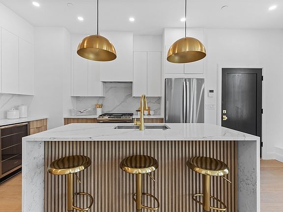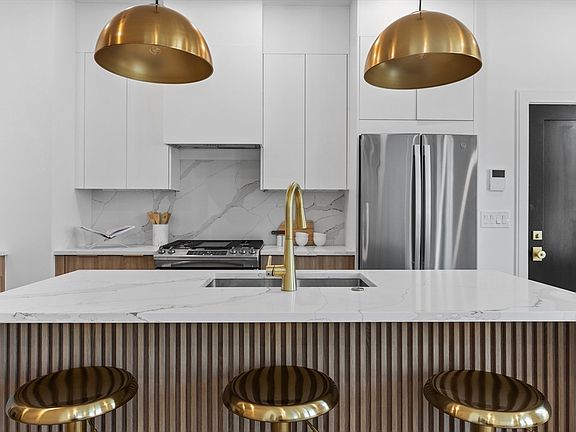 Nestled in between Eagle Hill and Orient Heights neighborhood in East Boston, this exquisite new construction condo offers a lifestyle of unparalleled comfort, style, and convenience. This home features 2 bedrooms and 2 bathrooms. Natural light floods the open concept living space with its oversized Anderson windows. The kitchen is equipped with a waterfall island, stainless steel GE appliance package, modern flat panel cabinetry with matte white cabinets on the top and light wood tone on the bottom. Enjoy the convenience of a covered off street parking spot and private fenced in backyard patio to lounge in a little oasis in the bustling city. This unit also features Sonos speakers for surround sound, Comelit Entry system and toe kick underlighitng. Situated just steps away from the Wood Island MTBA Blue line, this condo provides an unmatched level of accessibility to both public transit, Route 1A, Route 145, and the Sumner Tunnel getting to downtown Boston in just minutes.