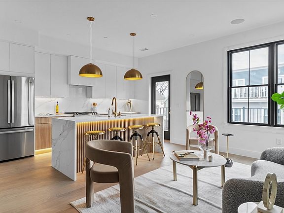 Open House Cancelled - Offer Accepted. Discover urban luxury living nestled between Eagle Hill and Orient Heights with this meticulously designed brand new construction 2 bedroom, 2 bathroom residence. Flooded with natural light through oversized Anderson windows, the open-concept living area features a sleek kitchen with a waterfall island, chic modern cabinetry and toe kick under lighting. Just off of the kitchen, step outside to enjoy your private wrap around deck spanning over 600 sq ft. Creating the perfect canvas for endless outdoor living possibilities. The primary suite features a walk in closet with an en-suite bath equipped with a double vanity and steam shower. Deeded parking, Sonos Surround Sound speakers, Nest Thermostat, Comelit Entry System and J-cloud HVAC diffusers complete the home. Just steps from the Wood Island MTBA Blue Line and major routes, downtown Boston is minutes away, making this home a pinnacle of convenience and style.