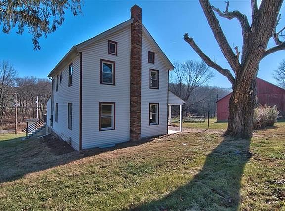 Beyond renovated farmhouse! Rebuilt from the studs in this 5BR (2 master BR suites - one on 1st floor and one on 2nd floor) 3 1/2 bath beauty has been completely rehabbed the right way. All new kitchen (stainless steel appliances), bathrooms, wiring, most of the plumbing, drywall, flooring and 1st floor laundry has been professionally installed for the new owner! The amazing great room with cathedral ceilings will blow your mind! 4+ acres w/stream and barn completes this awesome dream home package at an affordable price. Close to Rtes 209 & 33. Low taxes!