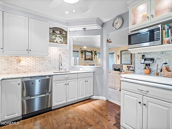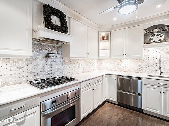 This updated, open-concept home in the highly desirable Millponds at Marlboro features a spacious living and dining area with a cozy wood-burning fireplace, perfect for entertaining. The modern kitchen is a chef's dream, boasting high-end stainless steel appliances, a floating island that tucks away for added space, a convenient pot filler, and an array of unique upgrades. Custom Cabinetry with lighted display shelves adds a touch of elegance, while under cabinet lighting enhances the overall ambiance making the space both functional and inviting. Each bedroom offers a private en suite bathroom, providing ultimate comfort and privacy. The primary features a custom California designed walk in closet and a newly renovated spa-like bathroom, creating a true retreat. The second bedroom is currently used as an office and includes a built-in queen-size Murphy bed that seamlessly folds down for guests. The attic has flooring for storage, new insulation and duct work. The AC compressor has been upgraded to a larger size, providing superior efficiency and performance compared to other units. Enjoy the convenience of a prime location with easy access to Route 9, NYC bus transportation, shopping and restaurants. Don't miss this exceptional opportunity, schedule your showing today!