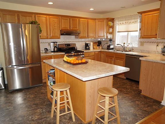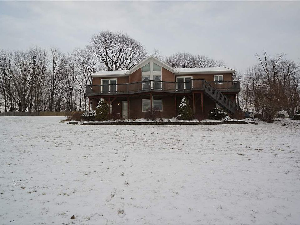 Custom 4BR/3 Full Bath home has amazing views on 5.04 acres! 2 levels of living space! Spacious master suite includes 3 closets, deck access and master bath w/ Jacuzzi tub and double sink vanity. Beautiful hardwood floors, cathedral ceilings in LR w/ gas fireplace. Lots of cabinet space in kitchen and SS appliances. Convenient laundry room w/ extra pantry storage. Spacious Family room on 1st level and attached 2 car garage. Large deck to take in amazing sunsets. Backup generator, taxes reflect senior star.