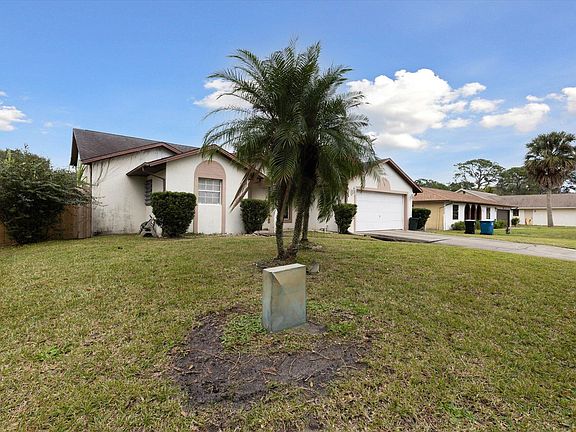 Whether for investment or your forever home this 3 bedroom 2 bath 1585 sq ft concrete block home on 0.28 acres with city water isa must see! The home has a split floor plan with tile floors throughout. It also features a formal living room and formal dining room. Theprimary suite has a shower/tub combo, walk in shower, double sinks and a bidet. Relax on your enclosed porch and enjoy the view of yourhuge fenced backyard which is large enough for a pool. The 2 car garage has an enclosed utility room. Close to I95, shopping areas,schools, etc.
