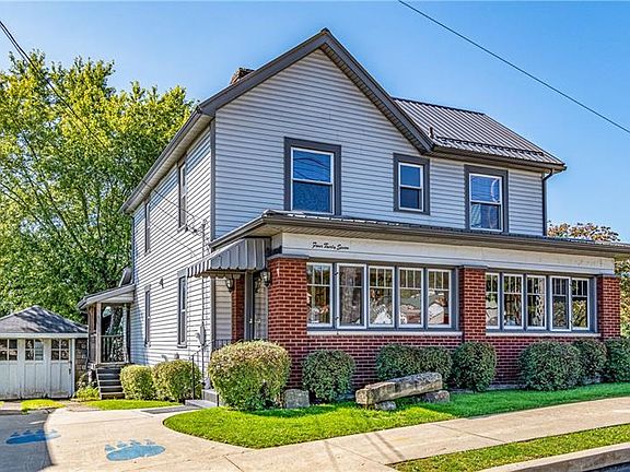 Turn of the century charm awaits you in the heart of Ellwood City's Northside. This corner lot house has retained the homes original woodwork and hardwood floors yet includes many updates such as replacement windows, new metal roof and siding. A walk through the front door into the large sunroom will have you admiring the original sets of beveled glass doors that lead into the spacious living room and parlor. Stay cozy around the fireplace this winter, or entertain many in the rooms that boast high ceilings and original lighting fixtures. Quaint built in china cabinets adorn the corners of the large dining room. The updated kitchen features a skylight and large windows allowing for plenty of sunlight. Four bedrooms, extra storage, and a nicely sized full bath complete the second floor. Spend the summers entertaining on the partially covered composite deck. Additional off street parking spaces in back. Buy with confidence as a one-year home warranty is provided with the home.