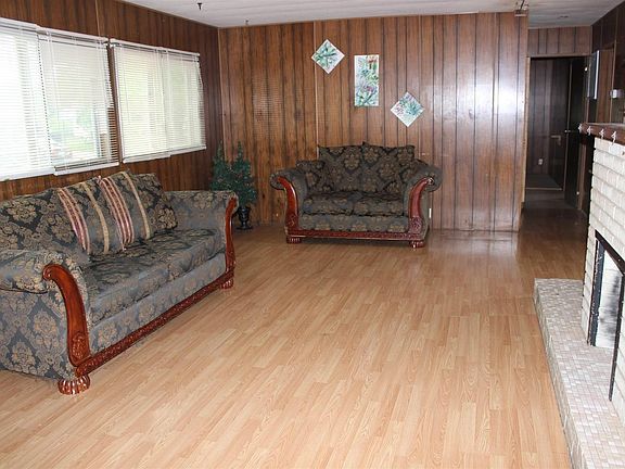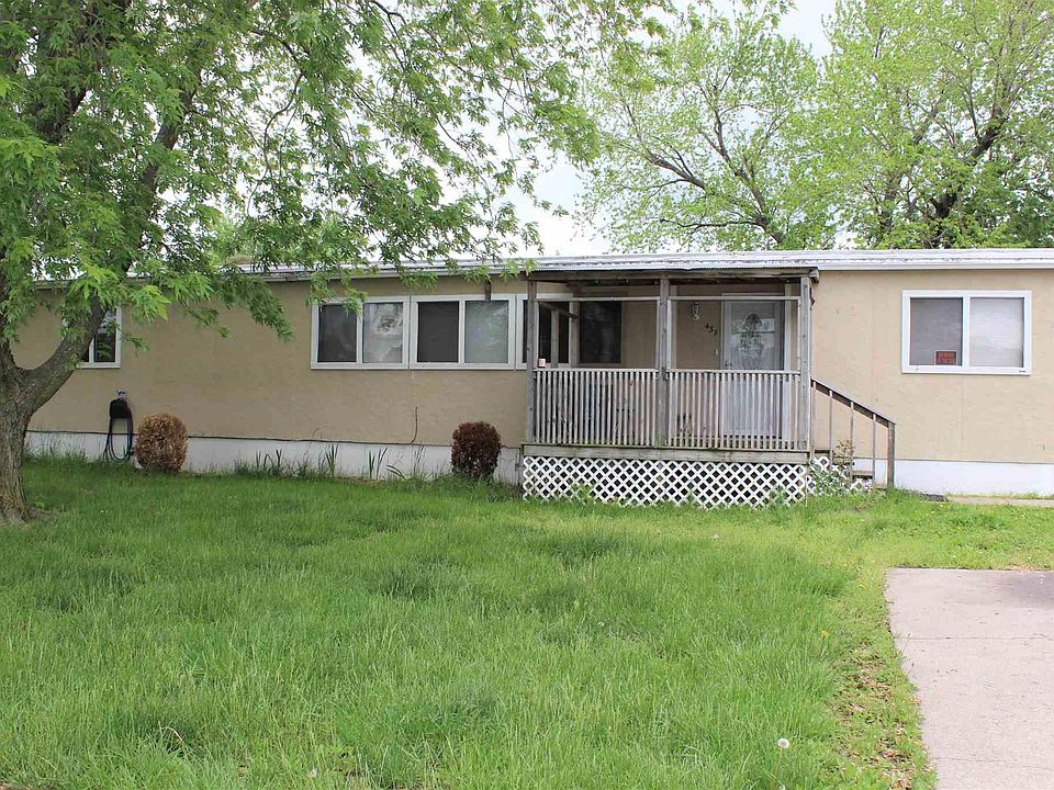 Make it your own. This '73 Kit Manufacturing 3 bedroom 2 bathroom home has an updated hall bath, heat and air, steel entry door, and electric service panel. The remodeling was started, however, just not finished. The living, kitchen and dining room wrap seamlessly around the decorative fireplace providing an open floor plan that is not only spacious but inviting. The owner's bedroom is quite roomy as well (easily accommodate a king sized bed), has a walk-in closet, plus a private bath with the most unique tub/shower unit. Let's go look today at this home located in Mustang Community!