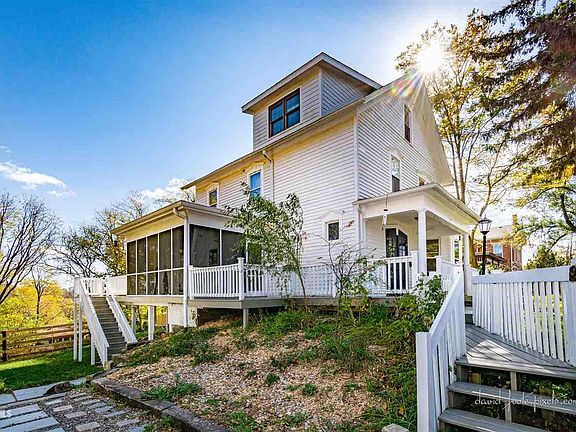 Perched high above Galena, this home features nice views, and inviting deck and an enclosed porch. The historic accents add extra charm. There is a covered front porch, foyer with coat closet, living room, dining room, family room, and a bright airy kitchen with views to the back yard and stand of trees. Upstairs there are three bedrooms, one features a sizable nursery which is currently being used as additional closet space for the master bedroom. The full bathroom is accessed both by the hall and by the master bedroom. Laundry is conveniently located upstairs too. The third and largest bedroom is on the third floor and accessed by a spiral stair. This room would also make a wonderful play room, studio, or third family room area. There is good attic storage space. The basement is full and unfinished, with a concrete floor and has been painted white. There is 200 amp service with room in the electric box. A brand new 2 + car garage which has been insulated. The deck is large and will hold a good amount of patio furniture, grill and tables. A new 3 season screened porch was added, as was a deck area reinforced for a hot tub, a water line has been run to this area and it is ready to have a hot tub installed. Enjoy everything Galena has to offer! Welcome Home!