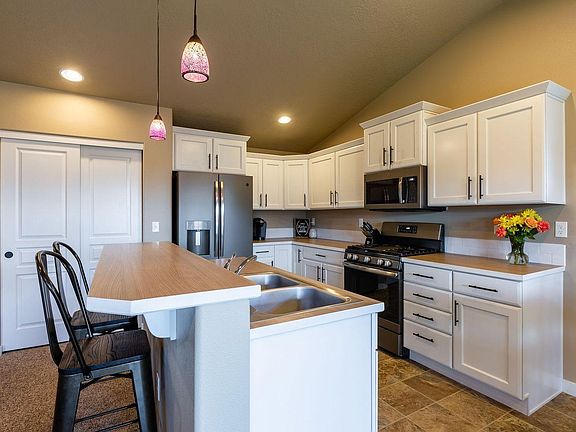 - Breakfast Bar, Master Downstairs, Pantry, Linen Closet, Walk-In Closet(s), Enclosed Toilet(s), Kitchen Island, Laminate Counters, Vaulted Ceiling(s), Open Floorplan