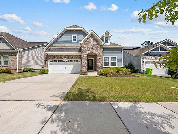 LOOKING FOR A HOME THAT OFFERS BOTH SPACE AND CONVENIENCE IN ONE OF THE TRIANGLES MOST SOUGHT AFTER COMMUNITIES? This two-story cottage-style property spans nearly 2,700 square feet and offers a versatile layout designed for today's lifestyle. The main level showcases tall ceilings, durable LVP flooring, and a welcoming living area anchored by a cozy gas fireplace. A dining room sits off the entry and can easily transition into a private office. The gourmet kitchen impresses with abundant cabinetry, energy efficient appliances, gas cooktop, double ovens, and a generous island perfect for gatherings. The first-floor primary suite provides a peaceful retreat, joined by two additional bedrooms and a full bath on the same level. Upstairs, discover a spacious bonus room, an additional bedroom, a full bath, and a walk-in storage area. New carpet adds comfort throughout, while a covered back patio extends living outdoors to a fenced yard that backs up to mature landscaping for added privacy. A two-car garage and tankless gas water heater complete the home. Just steps from the neighborhood pool, this home is nestled in 12 Oaks, a community offering resort-style amenities including a golf course, tennis courts, playgrounds, and a fitness center.