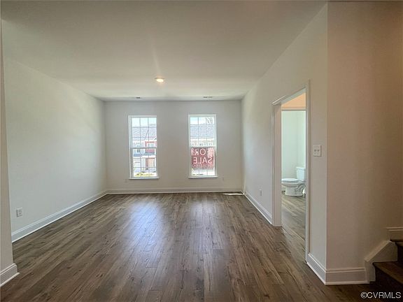 The Brook by Main Street Homes! Energy Star certified 3 story townhome offers 3 bedrooms, 3.5 baths, oak stairs from 1st to 2nd level, home automation package, rear entry 2-car garage, tankless water heater, rear deck, Hardie-plank siding and a charming, covered stoop. The first floor includes a bedroom, full bathroom, and coat closet. The second floor open concept offers a large great room, dining room, powder room, pantry, and gourmet kitchen complete with quartz countertops, ceramic tile backsplash, stainless-steel appliances, and an oversized 8’ island. The third floor includes a primary bedroom suite with an ensuite bathroom with ceramic tile shower, double bowl vanity and walk-in closet, guest suite with a walk-in closet and full bathroom, and laundry room. Randolph Pond amenities include sidewalks throughout the community, 2 community parks, pergola, dog park and walking trails. This low maintenance community in a top ranked school district is conveniently located off Coalfield Road with quick access to Midlothian Trnpk and Rt. 288.