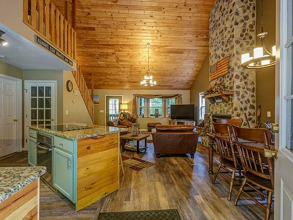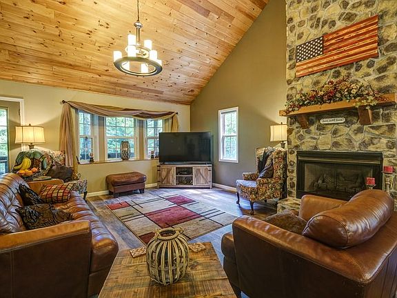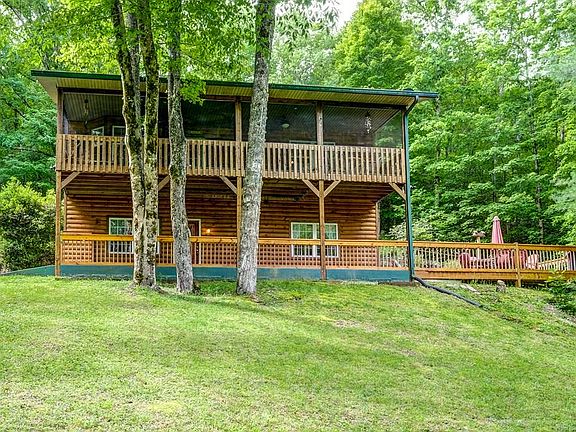 CREEKSIDE LOG SIDED HOME has so many amenities and is MOVE-IN READY! Besides having a creek in your yard, this home is in the River Cove community where you have a common area to enjoy access to the Hiawassee River! Inside your Great Room is a stone floor to ceiling fireplace, wood ceiling, granite & SS in your open kitchen. Down the hall is your Master Suite with exquisite bath featuring granite, glass/tile enclosed shower & convenient laundry area. Loft bedroom plus a full finished lower level! It hosts a Rec Room, second Master Suite, and storage room. A screen porch off the main level and a deck below is great for BBQ's and entertaining. Relax and enjoy your fire pit down by the creek!
