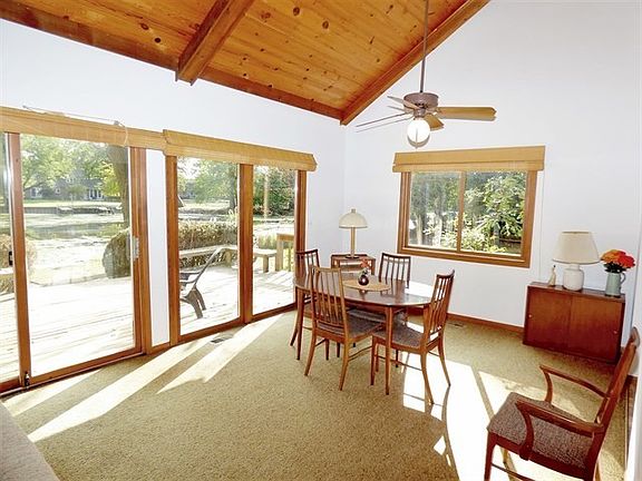 Picturesque waterfront views, fantastic fishing and the perfect spot to park your boat! This 3 bedroom, 1.1 bath home features soaring ceilings, an open floor plan and light filling floor to ceiling windows overlooking a quiet channel off of the Fox River and direct access to it! Rebuilt from the ground up in the 1980's, this home was custom designed by an architect and ahead of its time as it fits right in to today's modern style. The first floor features a great room, bedroom, powder room, floor to ceiling fireplace, dining room area, super functional kitchen and a laundry/utility room. The second floor has 2 more bedrooms and a full bath with a balcony overlooking the second floor. The 2 car detached garage has plenty of room for 2 cars or a car and a boat with plenty of room left over for all of the gear! All of this and over 200' of water front footage! Live on the water year round or make this your perfect second home!