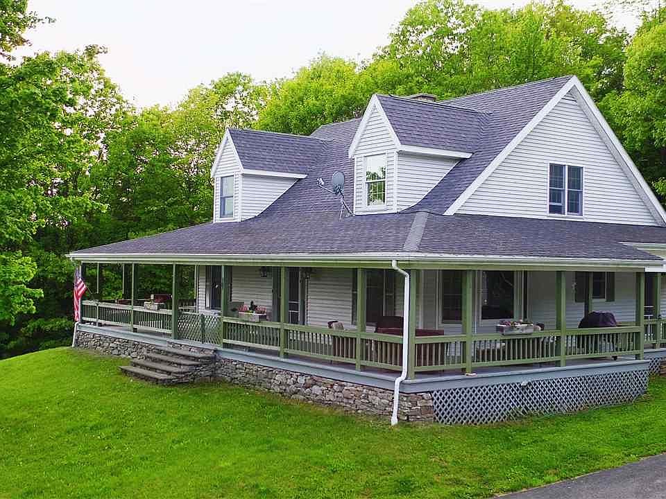 Long winding drive leads to this gorgeous Cape Cod style home sitting in the center of 155 acres of rolling meadows, woods, brook, and pasture. Quality workmanship throughout this well maintained home. Breathtaking views from wraparound porch. First floor master suite, wood and tile floors, granite counter tops and stainless appliances, cathedral ceilings. Groomed trails for recreational use, and horseback riding. Private stocked pond, horse barn, and fenced paddocks. Borders 2500 acres of state land. Own your own private estate with complete seclusion..