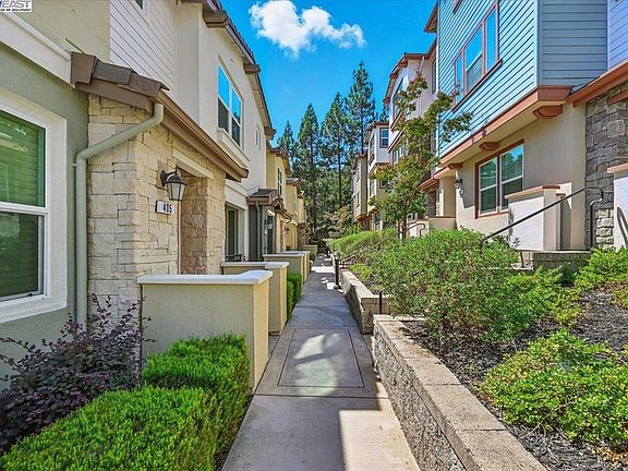 Welcome to 437 Ryan Terrace—an elegant tri-level corner townhome in the heart of San Ramon, a city celebrated for its top-rated schools, family-friendly vibe, and abundant parks. This spacious 3-bedroom + office, 3.5-bath residence blends comfort and functionality with designer finishes throughout. The gourmet kitchen boasts a large quartz island, gas cooktop, stainless steel appliances, and generous cabinetry. Enjoy luxury flooring in the main living areas, brand-new carpet in all bedrooms and hallways, and smart dual-zone climate control. Start your mornings on the private balcony, then retreat upstairs to a serene third level featuring a luxurious primary suite with dual vanities, a custom walk-in closet, and stunning mountain views. Two additional bedrooms share a full bath, while the laundry room offers custom built-ins. The versatile ground-level office (no closet) includes a full bath—ideal as a guest room, workspace, or media lounge. Additional highlights include a tankless water heater, EV charging outlet, and a 2-car side-by-side garage. All this in a quiet, kid-friendly community with easy access to I-680, shopping, and top schools—don’t miss this exceptional opportunity!