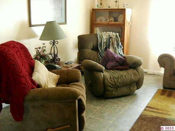 2 bedroom, possibly 3, 2 full baths, roll-in shower, extra room could be 3rd bedroom or hobby room, outside storage building or shop.