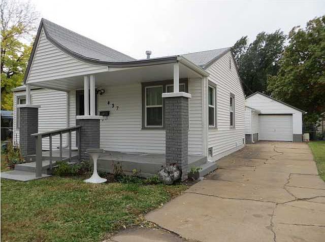 You'll fall in love with this darling home near Friends University. Lots of NEW! Interior: new carpet paint light fixtures new vinyl in kitchen and separate laundry room. Exterior: Newer roof 2010 guttering 2010 vinyl replacement windows 2012 vinyl siding 2012 newer electrical panel 2010 hot water heater 2011 and more. Updated kitchen with new stainless steel sink freshly painted with stove refrigerator separate laundry room with washer and dryer. Bathroom freshly redone with new subflooring vinyl flooring newer vanity mirror lighting and medicine cabinet stool and more. You'll love the freshly painted front porch and the large fenced backyard with alley access-great for off street parking. Garage is 20x30 with attached work shop. Plus there is a 3x4 storage area off the back porch. The works all done and this home is priced to sell. Don't miss out on seeing this home!