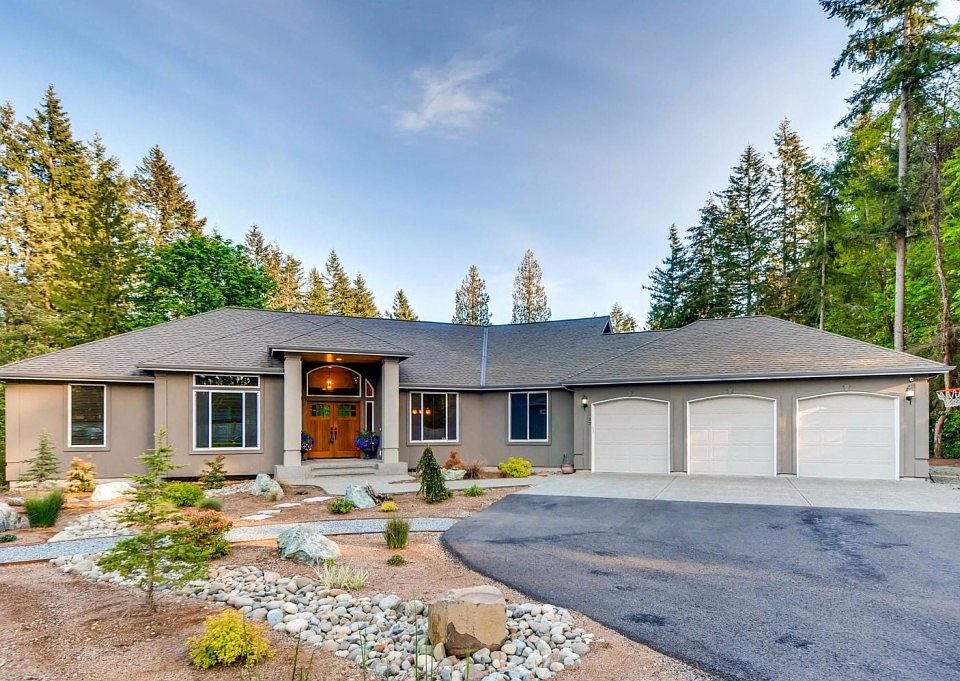 Secluded Luxury! This Breath taking Custom built Rambler on shy acre has it all. Enter into incredible vaulted ceilings w/ grand open living, custom trim work, & gorgeous flooring throughout. Wonderful Kitchen w/ tons of storage & light. Massive Master with Dual Walk-in closets & Spa like bath. Double door office, 2 additional spacious bedrooms & great baths. Huge 3 car garage with extra workshop space & the most Amazing outdoor entertaining space complete w/ fireplace for those chilly nights.