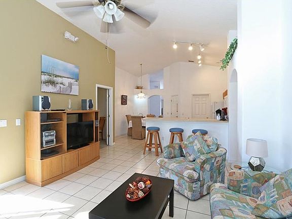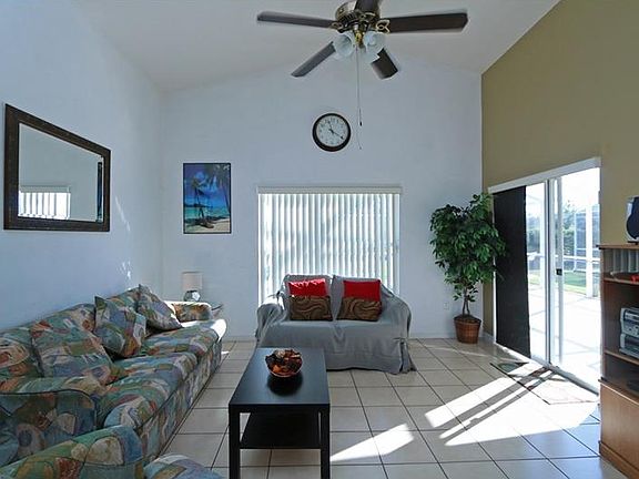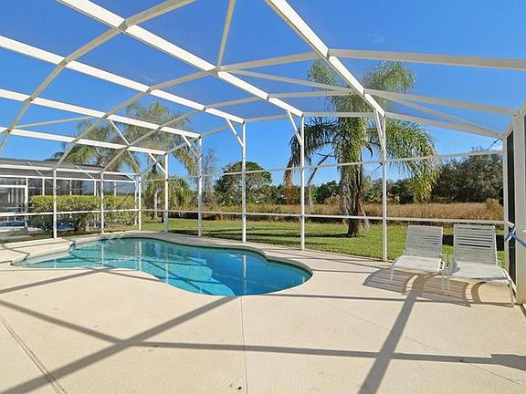 Detached four bedroom, three bathroom home with a private pool located only minutes away from Champions Gate. This lovely home benefits from two master bedrooms and two further bedrooms with a shared bathroom. There is a large screened heated pool, the pool was relined and the pump replaced in May 2017, there are no rear neighbours, please take a look at the photographs, the view is great. The living room, kitchen and all wet areas have floor tiles for easy maintenance. The home has a two car garage and as an added bonus the HVAC was replaced in 2015. The home is currently used for vacation rentals but would also make an ideal primary home. A Publix supermarket and additional shops are about 2 minutes away and all the restaurants at Champions Gate are about 4 minutes away. For golf lovers there is a huge choice of good golf courses within a 3-15 minute drive of the house and Disney is only 15 minutes away. Please note the furniture is available to be bought separately.
