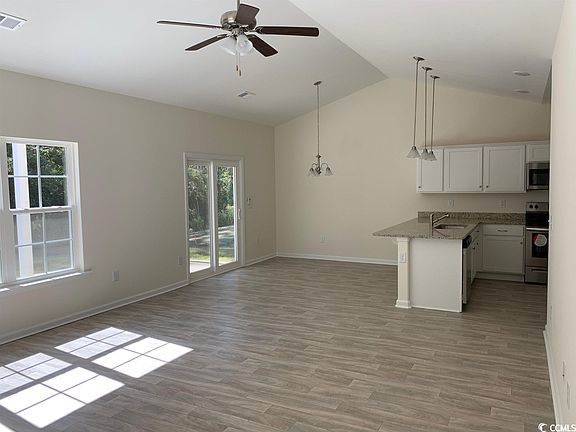 The Payton plan is a 3 bedroom/2 bath plan located in the Windsor Farms community in Conway SC. The interior of this home comes standard with granite countertops in the kitchen and both bathrooms, cabinets with crown molding and soft close drawers and cabinets, stainless steel appliances, vinyl flooring, 9 ft or vaulted ceilings, ceiling fans, LED flushed lighting, pendant lights and much more. The exterior of the home will have a completely sodded yard with plant beds, window screens, rear sliding door screen and a garage door with windows and remotes. The Payton is a one car garage plan, however it comes with a designed driveway that has more concrete than a normal one car plan to accommodate homeowners with multiple vehicles. Windsor Farms is located outside the city limits and is only a 5 minute drive to Historic downtown Conway and only 30 minutes from the beach. Pictures may vary depending on buyer design choices.