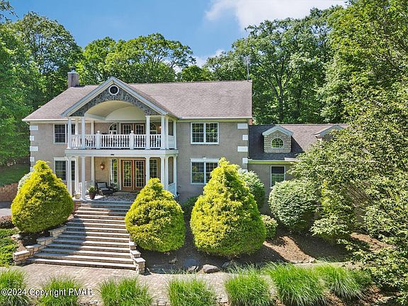 THE BEST VALUED ESTATE HOME IN HAMILTON TOWNSHIP! Large Price Drop! Welcome to your 6,750 Square Foot, 6 Bedroom, 6 Bathroom, 4 Car Garage & Finished Basement Dream Estate! The Largest Primary Suite with Private Veranda You Can Find! Nestled on a sprawling, private 4.8-acre lot at the end of a cul-de-sac in the highly sought-after Hamilton Township, this Luxurious Estate offers unparalleled elegance and comfort. Located within the prestigious Hamilton Elementary and Stroudsburg School districts, and conveniently positioned between Stroudsburg and the Lehigh Valley, this estate is a commuter's dream, just 75 miles from New York City. Situated only 10 minutes from Downtown Stroudsburg, you'll have access to vibrant restaurants, pubs, wineries, farmers markets, and festivals. Just under 5 minutes away, you'll find shopping, dining, and St. Luke's Medical Center, providing ultra-convenience in a serene, secluded setting. Enjoy the attractions of the Pocono Mountains with ease, including rafting on the Delaware River, hiking the Appalachian Trail, Camelbeach Outdoor Water Park, Kalahari Water Park and Resort, Camelback Mountain Resort, Mount Airy Casino, Multiple Ski Areas, and Golf Courses. Multiple award-winning wineries are also within a 15-minute drive for a relaxing day out. Bring the inside to the 32' x 18' in-ground pool, surrounded by nature, offering the ultimate in your private relaxing paradise. This stunning 6,700 square foot estate boasts 6 bedrooms, 6 bathrooms, and a 4-car garage plus a fully finished basement! This Estate offers some of the largest rooms you will ever find, with opportunities to add more bedrooms if needed. The fully finished ground-level walk-out basement is equipped with all plumbing and wiring for a second kitchen, perfect for an in-law suite or multi-generational living. As you enter the grand front entry, you'll be captivated by the custom butterfly staircase, the central attraction of the massive foyer. The estate features extensive hardwood flooring and 5.1 surround sound in four rooms, including the primary bedroom, perfect for entertaining. The commercial-grade kitchen is a chef's dream, and the first floor also includes a large home office, ideal for a recording or art studio if so desired. The primary bedroom is the star of the home, larger than most NYC apartments, measuring an astounding 610 square feet! This suite includes a large private veranda overlooking nature, offering a peaceful retreat to begin or end the day. This full cement stucco Mediterranean masterpiece offers timeless beauty and the ultimate in insulating quality with solid plywood and cement construction. Don't miss the opportunity to own this rare find, combining luxurious living with a prime location. Experience the best of both worlds in this extraordinary Hamilton Township estate. View the pictures and virtual reality tour today and make this home yours tomorrow!