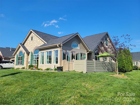 A must see! The Canterbury II, award winning home plan in one of the best locations in this popular community, The Orchards of Flat Rock. Featuring an open view of the community pond and park area, a short walk on the wide sidewalks to either the new outdoor Pavilion opening this Summer or the busy Clubhouse with exercise room, party room and heated pool. Enjoy main level living in a true split floor plan. Great Room with gas fireplace, primary bedroom with walk in closet, a second bedroom with full bath. Den/Office and a truly stunning, light filled Sunroom with beautiful views of the pond and park. Large Laundry Room with wet sink and spacious storage room. A bonus bedroom or flex room upstairs with a full bath perfect for guests positioned over a full size 2 car garage. Leave the yard chores and upkeep to the HOA and spend your time enjoying your community and it's many amenities or enjoy the shopping and fine dining on nearby Historic Main Street Hendersonville.