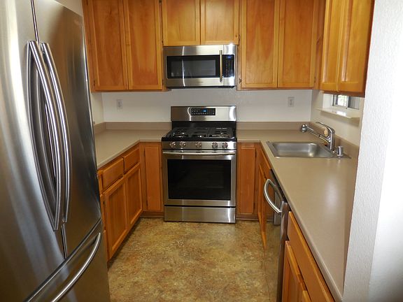 End of lane property, private backyard, forced air and heating, stainless appliances, gas 5 burner range, walk-in double shower. Decent sized bedrooms, one w/walk-in closet. One car garage with washer and dryer. Owner pays for water and landscaping service.