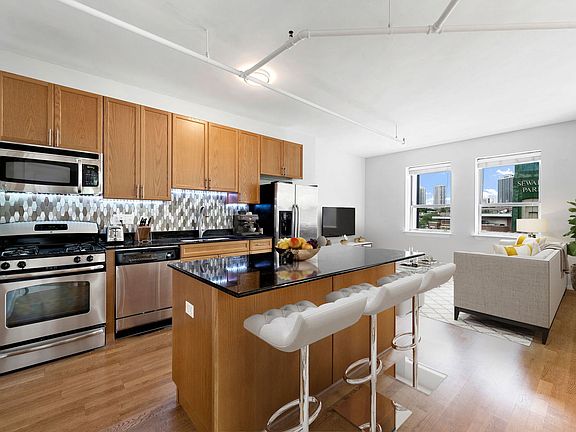 Inviting and luminous corner Parkside condominium that boasts expansive vistas of downtown and the picturesque Seward Park. The spaciously designed and open layout is perfectly suited for hosting gatherings while offering a versatile space that can serve as a distinct dining area or a comfortable work-from-home office. The well-appointed kitchen showcases sleek stainless steel appliances, a stylish backsplash, sophisticated granite countertops, and a generously sized island for culinary endeavors. Bask in the pleasures of your private balcony, granting you elevated views of the park and a captivating cityscape nestled among the treetops. Ample in-unit storage is further complemented by a secure additional storage locker unit conveniently located on the same floor. Notable features encompass exquisite hardwood floors, the convenience of an in-unit washer/dryer, and the indulgence of a sumptuous soaking tub for relaxation. Residents have the advantage of enjoying the building's array of amenities, including a well-equipped fitness center, attentive on-site management, and a secure receiving room for packages and deliveries. Nestled in the prime Old Town locale, this residence offers the luxury of leisurely strolls to an array of conveniences such as Target, Jewel, Mariano's, Whole Foods, theaters, a diverse culinary scene, an assortment of shopping options, as well as quick access to the Brown and Red line train stations. For those seeking secure parking, the option of a heated, deeded garage parking space is available for an additional investment of $30,000.
