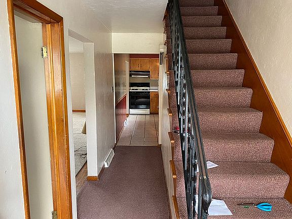 This home is a two story, all hardwood floor home located one block back from Main Street. There is a bathroom on each floor. Three bedrooms are upstairs, and there is a partially finished basement. The home is located in a commercial/residential zoned area and it has central air.