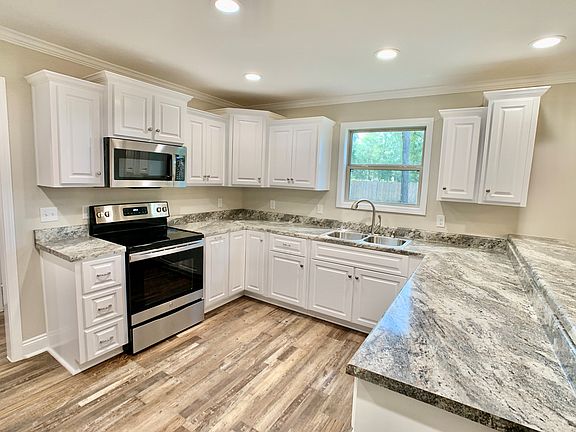 Cute 3bed/2bath New Construction Home in Geneva AL. Open floor plan w/ kitchen flowing into the dining room and overlooking the living room. Luxury vinyl flooring in living spaces, carpet in bedrooms, and tile in baths. The kitchen features stainless steel range, dishwasher, and microwave hood. Lots of countertop and cabinet space! Pantry closet located between kitchen and laundry. Ceiling fans in living room and bedrooms! 1431sqft - construction completed in Oct 2020 One car garage - nice shaded lot on a quiet city street! City of Geneva water - Alabama Power elec - natural gas available
