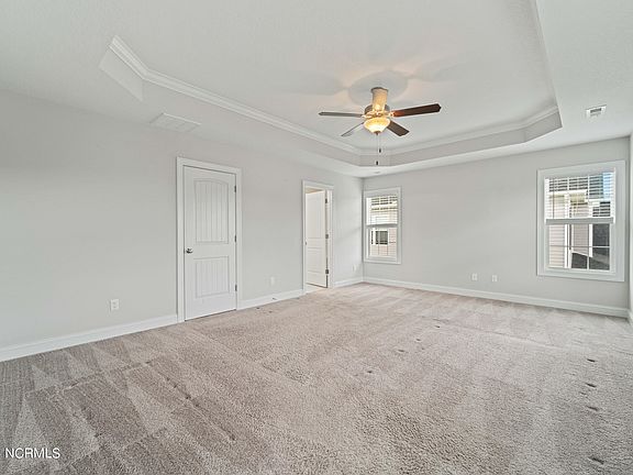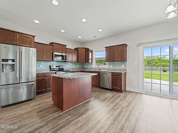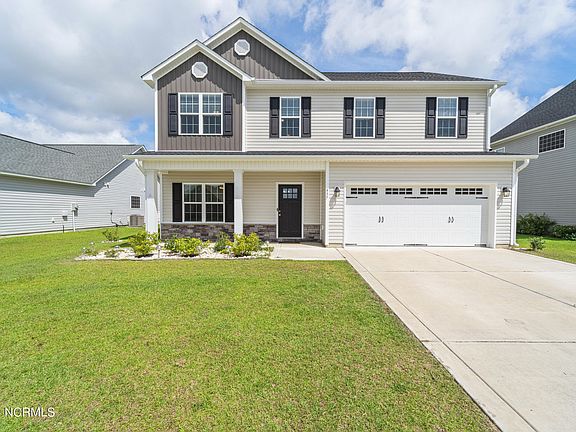 Welcome to this well maintained, 'like new', 4 bedroom, 2.5 bath home with over 2,200hsf in much sought after Onslow Bay. At the front of the house is a nice covered front porch that is perfect to sit and watch the sun come up. Stepping inside the home you notice the LVP floors extending through the dining room and into the kitchen. The first room is used as a formal dining room with plenty of room for a hutch and large dining table. The home opens up to the kitchen, breakfast area and living room toward the back of the home. The kitchen has plenty of staggered cabinets, granite countertops, tile backsplash, all stainless steel appliances stay, an island, and even a pantry to the left of the fridge. Plenty of cabinet and counter space for all of those holiday get togethers. There is a breakfast area between the kitchen and living room that is large enough for a dining table leaving the front room to be used as a sitting room/family room/ or even a play room. The huge living room has new carpet and is open to the kitchen with an electric fireplace and lots of room for that sectional couch. There is even a half bath on the first floor. At the top of the stairs is the huge master suite with a trey ceiling, master bath, and two closets. One closet is in the master bedroom and the large walk-in closet is at the back of the master bathroom. The master bathroom is complete with a dual vanity, soaking tub, and walk-in shower. There are 3 other large bedrooms upstairs all with large closets and even the laundry room is upstairs. Walking to the back yard you notice the covered portion of the rear patio and that the patio has been extended the width of the home with rounded edges for easy mowing. The back yard is completely fenced in and the shed even stays! There is a community pool at the entrance to the community and this home is minutes from base along with all shopping in Jacksonville.