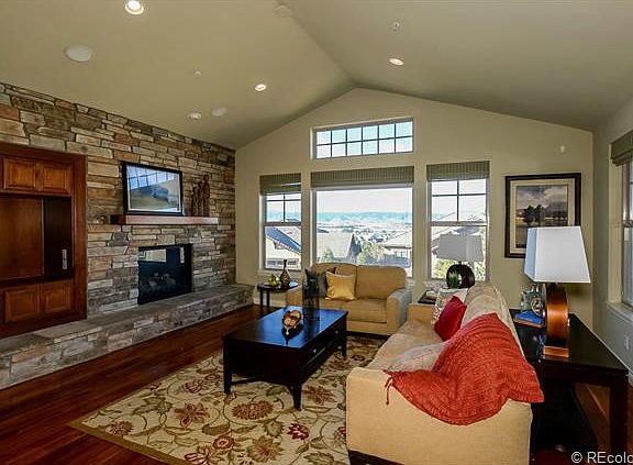 Contract Fell.Fabulous home in the exclusive gated community of Castle Pines Village. This kitchen is amazing with its large granite island, cooktop, and beautiful cabinets. The decorative tile vent makes a statement as you enter the kitchen. The adjoining family room has a fireplace and wall of expansive windows with wonderful Colorado mountain views. This entire level has sparkling cherry floors. There are both informal and formal dining areas. A covered deck allows the homeowner to relax and enjoy the stunning mountain views. The study offers the same mountain views with built in cabinets and bookshelf. The master has a fireplace and spa bathroom with jetted tub and double sinks. You'll love the huge walk in closet. From the master, access the private flagstone patio with a firepit for those romantic evenings. Beautiful landscaping makes this an area to enjoy. The secondary bedrooms are spacious. Downstairs enjoy the bar. Unit has elevator. New carpet with memory foam coming. Listing Agent: Carolyn Gensler Company: RE/MAX Professionals Phone: 303-885-9989 Email: Carolyn.gensler@yahoo.com