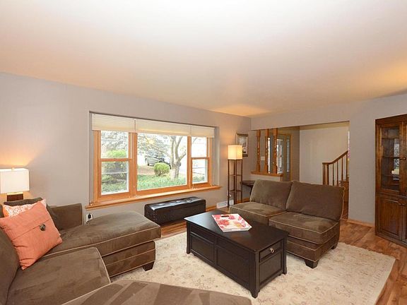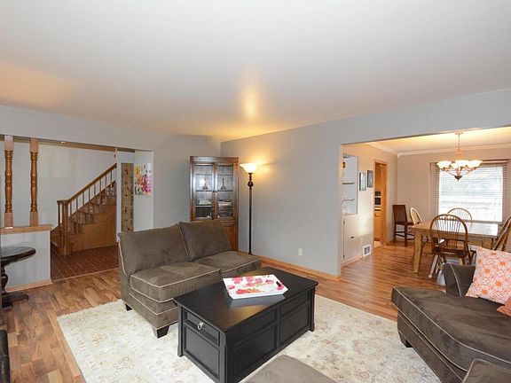 Exceptional home and setting in a convenient cul-de-sac location! Spacious interior features 4BR/3.5BA. Large front living room with bay window and adjoining dining room. Kitchen offers tile floor, appliances included, and dinette. Back family room with large natural fireplace. Nice size upper level bedrooms. Master with bonus 3-season sun room overlooking yard and inground pool below. Lower level has rec room, full bath, and egress window. Back yard has fenced-in deck and inground pool. Nicely landscaped!
