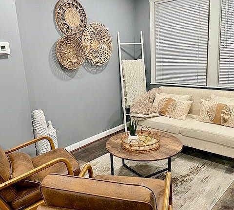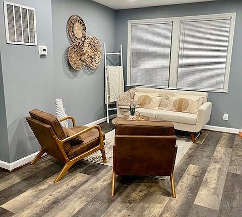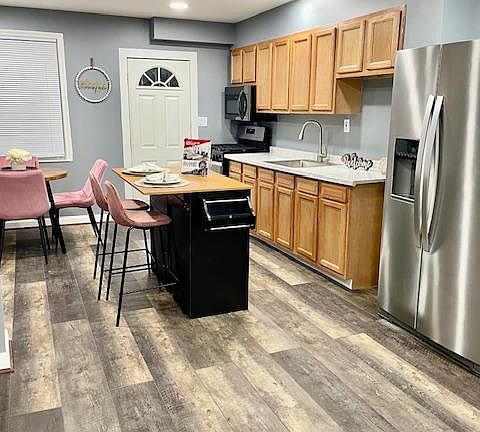 Welcome to this lovely 3-bedroom, 2-bathroom townhouse, thoughtfully renovated for comfortable living. Throughout the home, you'll find new appliances, a recently installed HVAC system, and a new water heater, ensuring practicality and efficiency. The main floor and basement feature new flooring, adding a touch of modernity to the space. Upstairs, hardwood floors offer timeless charm and durability. The basement includes an additional bedroom and full bathroom, accessible through its own entrance and connecting seamlessly to the upper levels, providing flexibility for various needs. Step outside to the back deck, perfect for enjoying the outdoors. With parking space for two cars in the rear driveway, convenience is a plus. Situated just 12 minutes from John Hopkins, this home offers a balance of accessibility and suburban comfort. Come see for yourself!