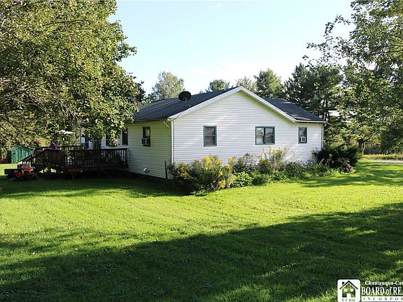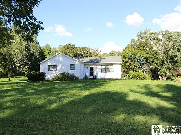 A solid Ranch home on approx. 4.6 acres minutes from town. 3 spacious bedrooms and the master has its own bath and large double closets. A second half bath has room for a bath/shower to be installed or the laundry moved upstairs. Open floor plan w/ lg living/dining combo that is open to the kitchen. A full basement with laundry room, craft room, root cellar and workshop, room for it all. A large back deck overlooks a peaceful yard with apple trees, blueberries bushes and more. A new boiler, hot water tank, front and back doors. Bypass generator stays. Easy access to 86, Ellicottville and Chautauqua.