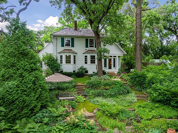 Enchanting 2 story home overlooking Minnehaha Creek. Star Tribune Award winning gardens. Lush perennials surround the home and a stone path winds down the hill through the flowering perennial gardens to the creek. The 4 bedroom home features spacious sized rooms, hardwood floors, vaulted and beamed ceilings, some original wrought iron windows and original glass French doors. The main floor has a living room with a fireplace, a formal dining room, a remodeled kitchen/dinette, a bedroom/den with a bath and a 4 season porch that walks out to a brick paver patio. The upper level has 3 bedrooms with large closets and alcoves, a veranda and a remodeled full bathroom. LL has a finished family room with a fireplace, laundry, cellar, work bench and a storage room. It offers a cedar shake roof, steel siding, replaced double paned windows, newer furnace/AC/water heater, security and inground sprinklers. You will find this home to be very well preserved and meticulously maintained.