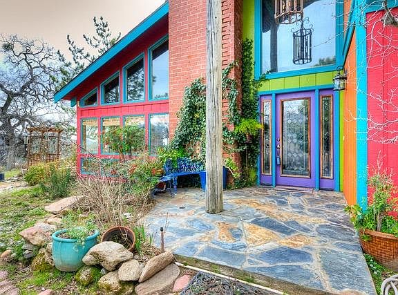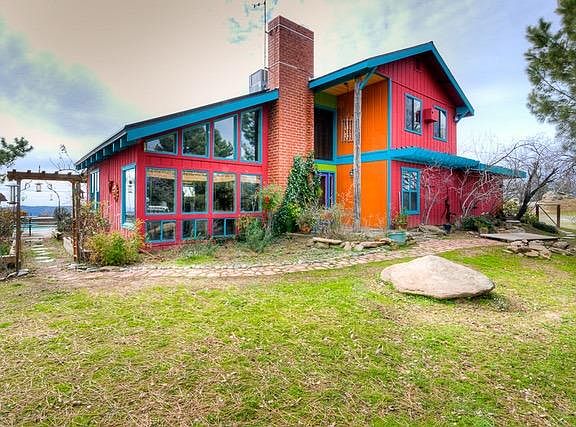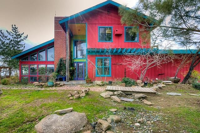 In a world of greige homes, are you looking for something different? This home makes a bold statement with joyful colors and fun finishes. Sitting on a hilltop of 8 acres, you have breath taking views from every window. On the main level, you will enjoy floor to vaulted ceiling windows, a sunken living room with fireplace and an ample kitchen with playful tiles and stainless steel appliances. There is also two bedrooms, one with attached bath and french doors to the back yard. Upstairs you have two more bedrooms (one with a huge walk in closet) and another full bath. There is also a loft space open to the main living area that would be a perfect reading nook, workout room or office area. The yard space of this home is perfect for entertaining: lots of wood deck surrounding an in ground pool, a bar, mature landscaping and views for days! Come experience this one of a kind home!