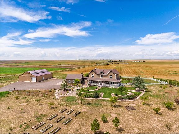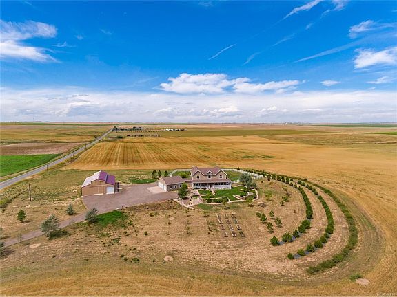Spectacular private walkout country home with 42 x 60 pole barn on 40 acres just 15 miles from 76 on paved roads! Relax and enjoy morning sunrise from your wrap around front porch and take in sunsets and mountain views from your 50’ covered Trex deck, spacious patio with fire pit or gazebo. You will love gathering in your granite and knotty alder wood kitchen with island gas cooktop and roomy breakfast bar which flows to the stunning 2 story great room with granite wet bar or cozy family room. Private study, formal dining room, huge mudroom, hardwood floors, iron railings, rustic western fixtures and more! Private Master En-Suite with fireplace, walk-in closet and dual steam shower. Finished walk-out basement with an awesome media room, granite wet bar, 2 bedrooms, bath plus 2 bonus rooms. The barn offers flexible space for 5 horse stalls and space for vehicles, storage plus a workshop. Text 47154 to 35620 to see the virtual tour. Excellent move in condition! Hurry! Call or text Tom Gross at 303-591-2116 or visit www.tomgrosteam.com.