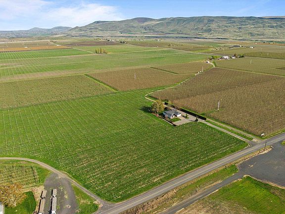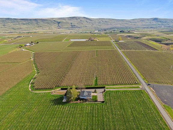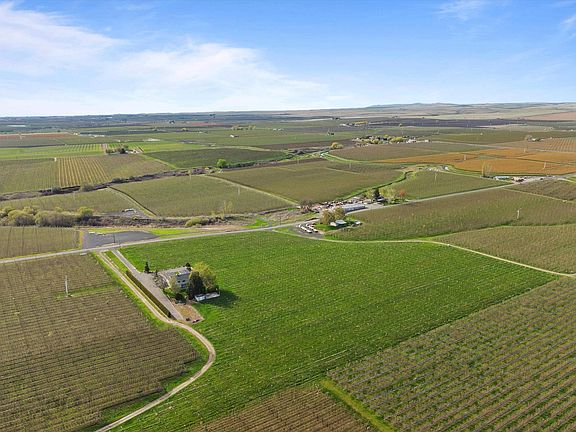MLS# 283181 Welcome to privacy and serenity situated on 10 irrigated acres. This over 3800 sq. ft. rambler basement home offers 3 bedrooms, 3 bathrooms and large open spaces with lots of storage. There are hardwood floors throughout the main floor. Kitchen countertop and master countertop are Corian. The backyard has a sport court and storage shed. There are 3 acres of apple trees, gala and fuji variety, and 5.5 acres of concord grapes, all of which are currently leased to the surrounding farm.. The home site is nestled off the road and in the middle of the farm.