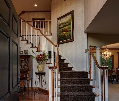 Stunning 2 story walk-out in Tullamore Glen on scenic lot surrounded by towering evergreens, backing to waterfall in garden. This former Tony Eiden parade model is exquisitely remodeled with the highest quality. A magazine showcase property! Expansive rooms, Gorgeous kitchen-a chef's dream. 2 story great room with lovely landscape view from large custom windows. Luxurious owners' bedroom suite with marble bathroom offering heated floors. 2 stair cases to both upper and lower level. A perfect 10!
