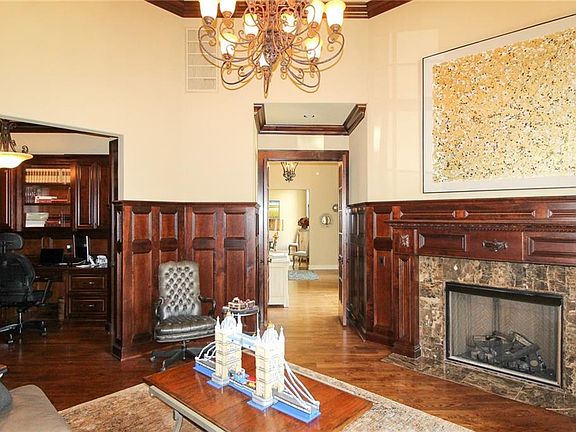 Ashton Grove on Cul-De-Sac! Spacious Master with huge walk-in closet & access to study, pool & hot tub. Downstairs Mother-in-Law Bedroom with full bath, walk-in closet & door to outside. Wrought iron staircase & beautiful hardwood floors throughout. Kitchen is a chef's dream with large granite island, built-in Sub-Zero refrigerator/freezer, double convection ovens, copper sink & trash compactor. Stainless steel appliances, Butler's pantry, wet bar & wine cellar. Theater/Media room, Central Vac system & security system with six cameras. Backyard perfect for entertaining: concrete pool with automatic water fillers & hot tub with fountain (hot tub control pad located inside.) Large covered patio & fireplace. Tree-lined wrought iron fencing, providing privacy, safety & peace. Oversized four car garage with in-ground storm shelter. 1500 sf of unfinished attic space & house wired for surround sound.