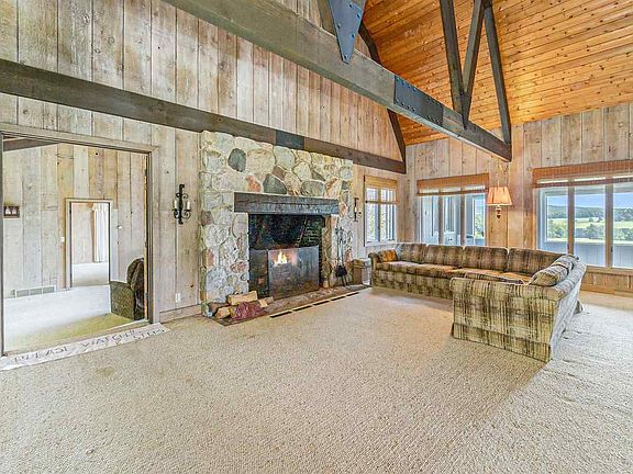 Timber frame farmhouse is located only 3 1/2 miles from downtown Harbor Springs. Beautiful and rolling 40 acre parcel with open fields and hardwood trees. Great fieldstone fireplace and main floor master bedroom. Large sunroom overlooking the picturesque fields. Area of beautiful homes.