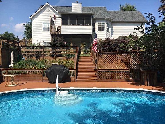Beautiful RANCH w/POOL+FINISHED basement~Classic formal dining rm w/trey ceiling~Open floorplan,hardwoods throughout main living space w/wall-to-wall carpet in sleeping chambers~Master Retreat features trey ceiling,cool neutral paint,spacious walk-in closet+spa-like bath~Two spacious sec bedrms & addl full bath on main~Lower level incl bedrm w/walkin closet,full bath,media rm,game rm,family rm w/built-ins+5th bedrm/office/exercise area or playrm~Exit to yard w/deck surrounding pool w/NEW LINER~Check out RV/Boat Garage w/tons of storage~Hurry this one won't last!!