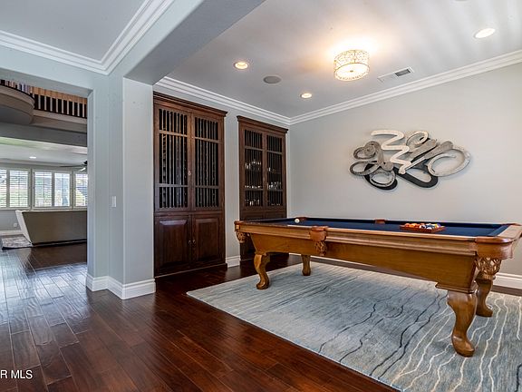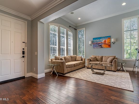 Absolutely stunning home in sought after Villa Serrano that can't be missed! Exceptional property with 5 bedrooms, 4 baths, office, bonus room & gym. Welcoming charming front porch. Highly upgraded with gorgeous Acacia hardwood floors, crown molding, plantation shutters, 8 foot doors, designer paint, chic light fixtures, custom built-ins, Control 4 and sound system. Open floor plan with natural light ideal for entertaining and everyday living. Living room and formal dining room, den/office with custom built-in cabinets. Downstairs bedroom and full bath with travertine and tile floor. Completely remodeled spectacular chef's kitchen is heart of the home with beautiful custom white cabinets with pull-outs, Wolf range, Sub Zero fridge, stainless appliances, huge island with seating, storage and stunning quartzite counters with designer tile backsplash. Spacious adjoining family room with fireplace and wall of windows. Private, incredible entertainer's dream yard with grand sparkling pool, raised seating areas with cozy brick fireplace, BBQ center, large grassy area, lush landscaping, covered patio, mountain views, big side yards. Grand staircase leads to expansive Master suite with sitting area, big walk-in closet with built-ins, luxurious bath with travertine shower with rain glass, big tub, dual vanities. 3 additional spacious bedrooms one ensuite and Jack & Jill bath with pedestal sinks. Loft/bonus room with custom built-in desk area with cabinets. Private gym in garage with new gym flooring. Garage with epoxy floors, built-in cabinets. Wonderful curb appeal. Prime location, close to parks, hiking trails, Sycamore Canyon K-8 School, The Village. A special offering!