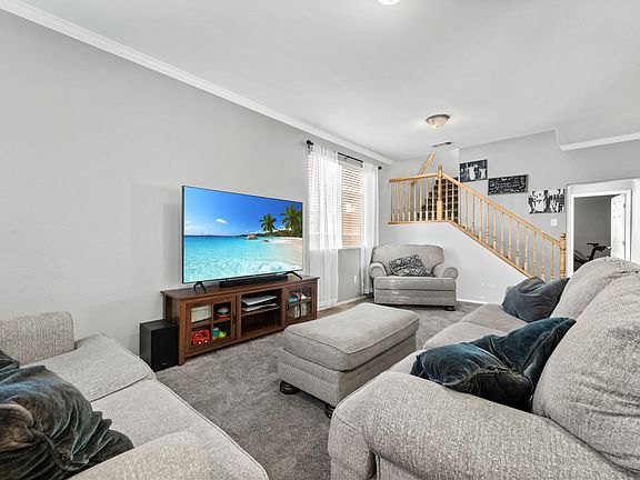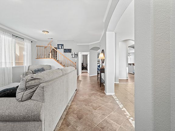The home has 4 bedrooms and 3 baths. One bedroom is down stairs with its own bath and there is a good size loft upstairs. Down stair you can enjoy time with your family and friend in the cozy living room area with a fireplace off the kitchen area with a dining bar and also dining area included. There is also a formal dining room off the formal front room. At the top of the stairs you arrive at a loft with ample area for an office, play area, homework space - etc. leading to all the upstairs bedrooms and laundry room. The master suite has a fireplace with 2 closets, linen closets and lighted shower area! The living room down stairs leads to a lovely backyard where you can relax and unwind after a long day! There is also a small shed for storage to the side. Don't miss out on this beautiful home - perfect for all! The buyer is to transfer the solar into their name and agree to the agreement and terms. (PPA) Approximate monthly payment is $120.00 - buyer to verify.