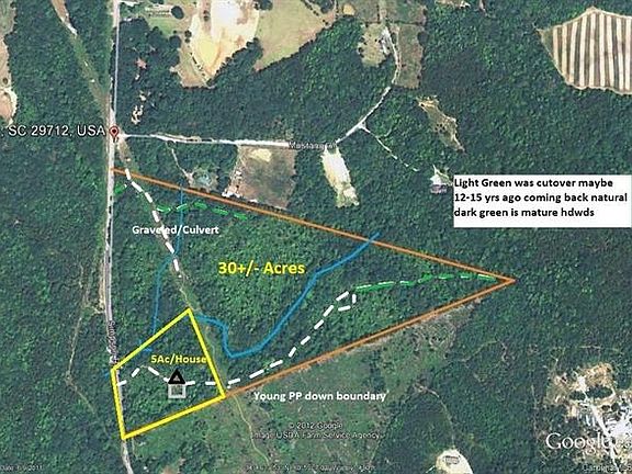 Private Home on a clear running stream and 5 acres of land. Big hardwoods dominate the landscape and are home to deer/turkey. Swings and a fire pit near the home/stream provide hours of outdoor fun. Home features an open living/kitchen area and expansive loft. Floors/counters are painted concrete that truly shine. Unility closet central to the 3 bedrooms and bath. On demand hot water heater. Level yard and sizable storage building. A nice covered porch overlooks the path down to the stream. Quick access to I-77 to Rock Hill or Charlotte. Only minutes to Richburg.