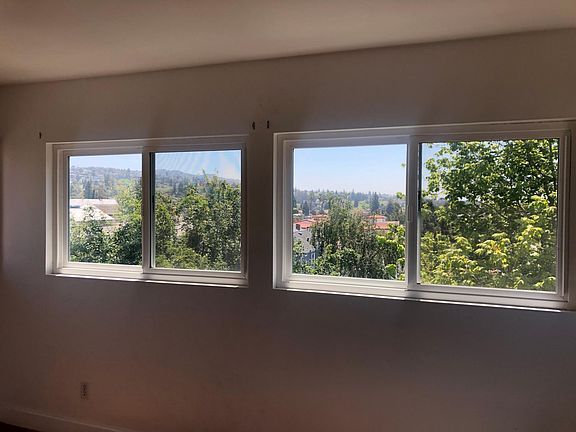 Sunny second floor unit #3 with formal entry and hall. Views of Oakland hills and partial downtown. Harwood floors , dual pane windows . Updated kitchen , SS steel appliances and gas stove , eating area off kitchen, Office area .Updated tiled 1.5 bathrooms . 2 Bedrooms have double closets. Large living room . Short walk to Piedmont Ave. and College Ave. to enjoy dining ,shopping and activities 12 month lease. Owner pays for water and garbage. Coin Washer /dryer on site. Ample street parking .