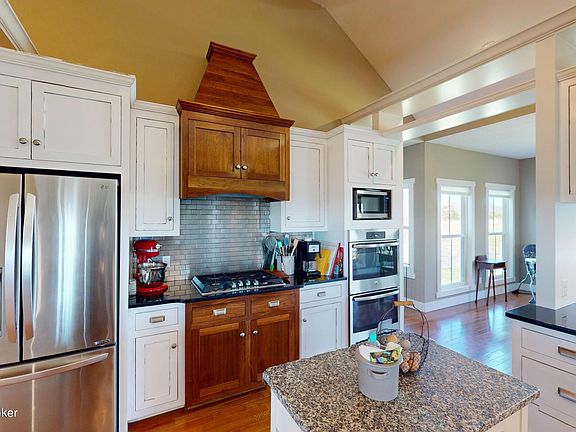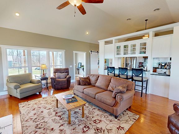 40+- acres of level to rolling land! Man cave wired for surround sound and a projector. Gun storage and bonus room in the basement. 450 sq ft Mother-in-Law suite/cottage with wheelchair ramp and handicap accessible bathroom. The mother-in-law cottage is attached to the house by a 964 sq ft deck. Powell's Drop Cave mapped by Mammoth Cave Research Team. Limestone BBQ Pit and large tree fort on the property. Fenced pasture and two stalls in the shop. There are 3septics on the property. Deer skinning rack, fish cleaning station and walk-in cooler for game in the shop. One year old addition to the shop which is currently used for storing an rv., and two 220 hookups in the shop area. The Pond is stocked with catfish, sunfish and bluegill. Producing chestnut, pear, peach, apple, and persimmon Abundant wildlife and multiple trails are on the farm. 573 sq ft. apartment in the shop with a full kitchen, bathroom, and bedroom with furniture and appliances which will sell with the property. The land can be accessed from two county roads, one is paved, and one is chip and seal. There is a total of 4.5 bathrooms in the living areas.